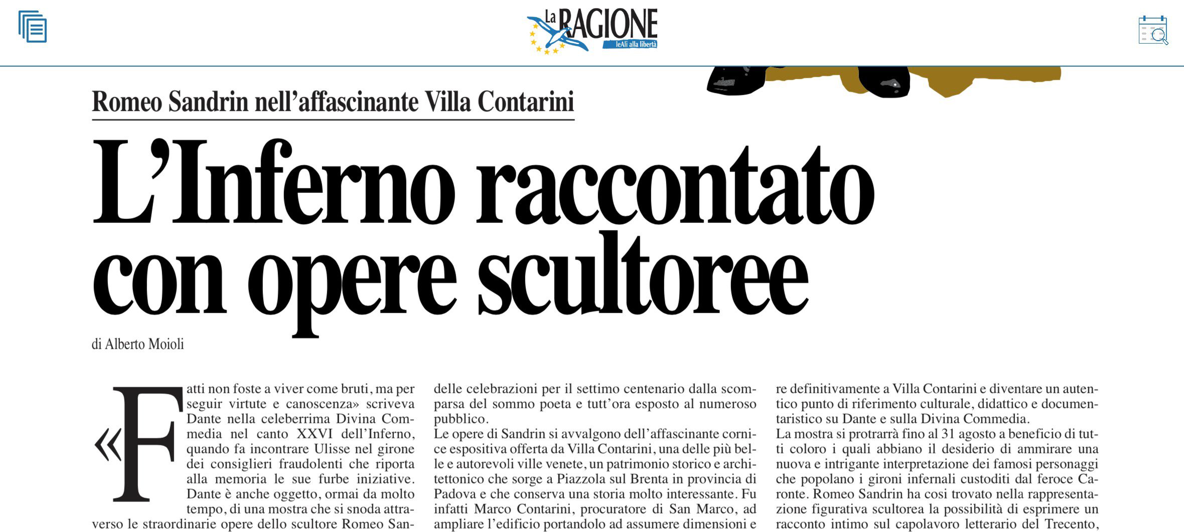 Articolo dedicato alla scultura di Romeo Sandrin dedicato al capolavoro dantesco della Divina Commedia ed esposto nella meravigliosa cornice espositiva offerta da Villa Contarini