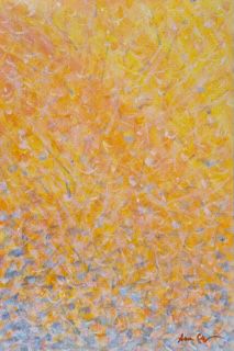 Pur con una propria sensibilità ed una cifra stilistica personale, Anna Ceppi proviene da questo ambito culturale e artistico, la sua sperimentazione creativa appartiene dunque alla ricerca interiore della bellezza intesa nel senso più ampio del termine. L’artista nel ricordare il pensiero di Jean Guitton[2], celebre filosofo francese, “i colori mi rendono Dio immediatamente presente”, tende a sottolineare la straordinaria forza della sua idea di pittura, riuscendo a rimanere in equilibrio tra arte e scienza come tra immanenza e trascendenza. La cultura profonda e raffinata dell’artista dunque offre all’osservatore delle sue opere l’opportunità per andare idealmente oltre alla tela, oltre a quel “sensibile” insegnato da Immanuel Kant[3] nella sua “critica della ragion pura”. In tutto ciò la luce e la centralità della ricerca poetica del colore sono autentici protagonisti proprio come al tempo dei pittori divisionisti. Gaetano Previati[4], ineguagliabile protagonista di quel tempo, concepì il suo gesto pittorico come espressione di un’idea e non come semplice raffigurazione di un soggetto, un approccio questo che ha sgomberato la strada interpretativa verso una ricerca espressiva più libera e più legata alla profondità delle emozioni dei pittori come Anna Ceppi.