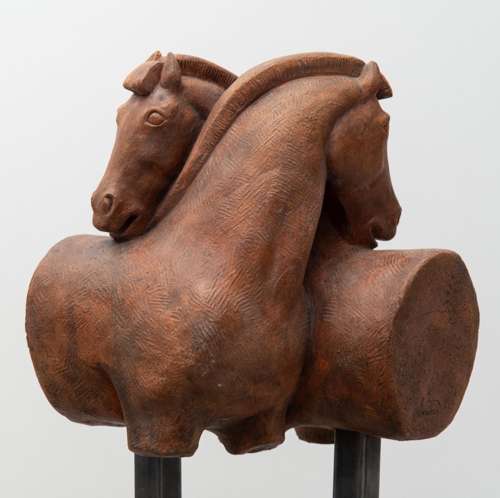 “Osservare le opere di Roberto Fiasella è come assistere a un dialogo silenzioso tra materia e spirito, dove ogni scultura diventa un frammento di vita sospeso nel tempo. La figura del cavallo, tema centrale della sua ricerca, non è mai una semplice rappresentazione anatomica. Ogni dettaglio, dalle linee morbide del dorso alle tensioni dinamiche dei muscoli, racconta una storia di forza, grazia e libertà.